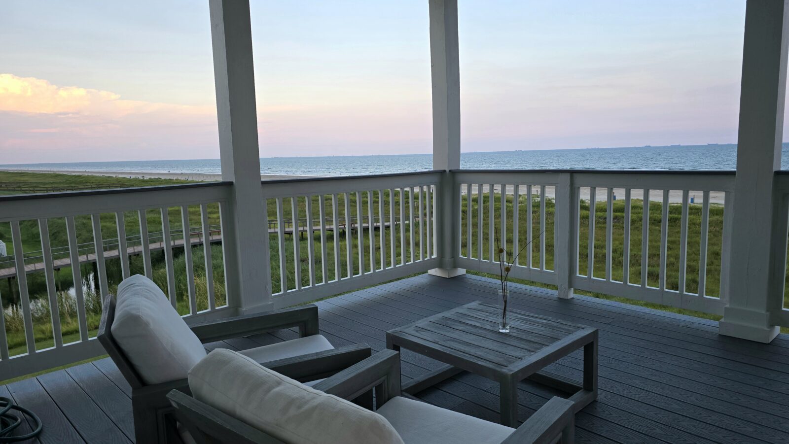 SunsetSunrise: Good Morning, Galveston!Breakfast on the lower deckCovered lower deckLiving room and the GulfSunsets in the living roomSunsets in the living roomSunrises in the living roomSunrises in the living roomKids’ corner with TV and PS4 proPowder roomFirst Floor: Bedroom 1: King bed and en-suite bathroomFirst Floor: Bathroom 1First Floor: Shower Sunsets on the covered upper deckSunsets on the covered upper deckSunsets on the covered upper deck2nd floor: Bedroom 2: Master bedroom: King bed, tub, shower, and walk-in closet.2nd floor: Bedroom 2: Master bedroom: King bed, tub, shower, and walk-in closet.2nd floor: Bedroom 2: Master bedroom: King bed, tub, shower, and walk-in closet.2nd floor: Bedroom 2: Master bedroom: King bed, tub, shower, and walk-in closet.2nd floor: Bedroom 2: Master bedroom: King bed, tub, shower, and walk-in closet.2nd floor: Bedroom 2: Master bedroom: King bed, tub, shower, and walk-in closet.Bedroom 3: 4 sets of custom-made bunk beds with 8 x-long twinBathroom 4: bathroom with a double vanityBathroom 4: walk-in showerBedroom 4: King bed with en-suite bathroomBathroom 4Bathroom 4: tub/shower combinationBedroom 5: King bed with en-suite bathroomBathroom 5Bathroom 5: walk-in showerGround floor: hot tub, summer bar, and outdoor sofaHot tub and summer barAn outdoor sofaThe moon over the Gulf
